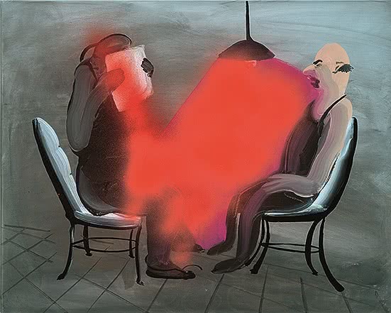 La artista iraní imagina los rituales extraños y carentes de sentido del ámbito masculino. Sus pinturas de grupos de hombres en ropa interior o para dormir, felizmente inconscientes, y en aparente disfrute de sus propios apuros y de la compañía de sus iguales, se encuentran llenas de una sensación de exhibicionismo absurdo. A este respecto la pintora asegura que «deja que hable el subconsciente».