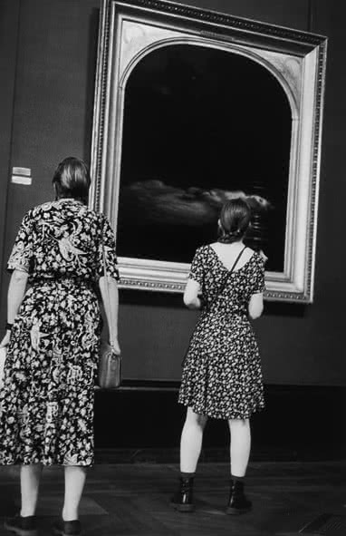 Así, el contraste entre la quietud de la obra de arte, fija en la pared, siempre la misma, y la vida que desprenden quienes ante ellas se sitúan, a pesar de haber sido inmortalizados a su vez por la cámara de Andrade, cala rápidamente en el espectador de esta muestra, que no podrá evitar sonreír ante muchas de las fotografías y pensar en cómo nos ven los demás cuando no nos sabemos observados, cómo son nuestras reacciones a los ojos de otro.