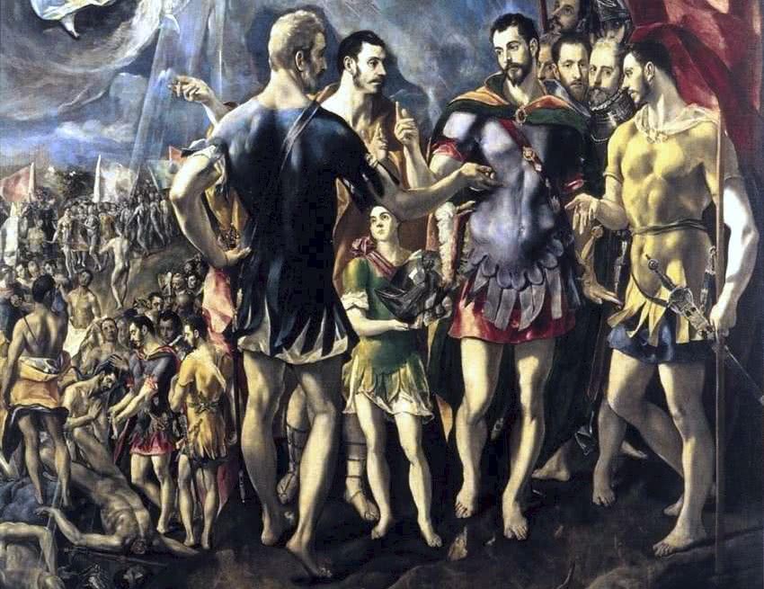 Mauricio y sus hombres morirán bajo el peso de las hachas con las que construyeron las murallas que les habían de proteger de sus enemigos, defendiendo sus convicciones y su dignidad. El Greco, por su parte, espera ansioso el dictamen del rey a su obra.