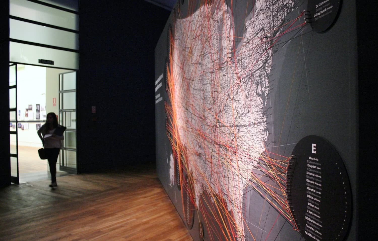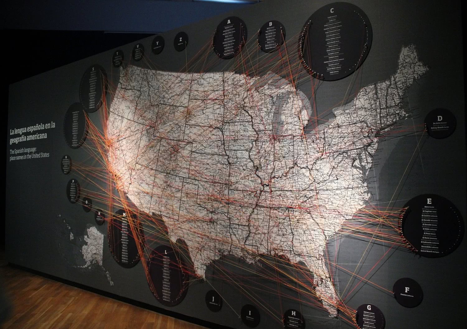 El recorrido de la exposición es abierto y transversal a través de los ámbitos de la arquitectura, el urbanismo y el territorio. Los visitantes pueden ver la influencia que los españoles dejaron y mantienen al otro lado del Atlántico; ciudades como Nueva York, San Francisco o Nueva Orleans mantienen en su estructura, su cultura y su patrimonio actuales una interesante presencia española.