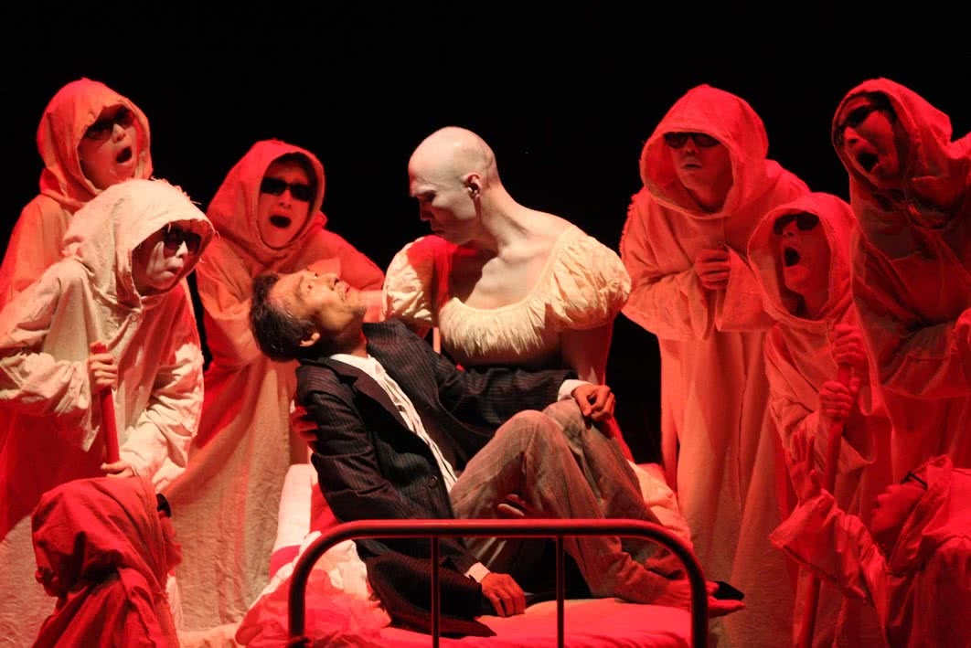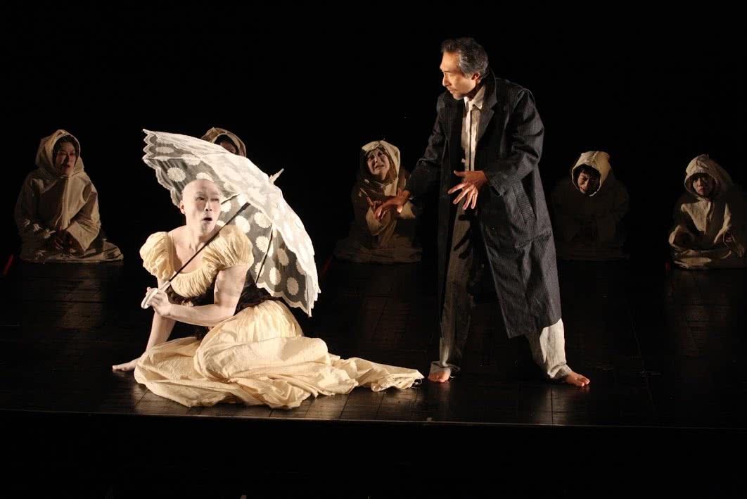 Ahora, 500 años después del suceso, la compañía Kei Jinguji entona este bello clásico con un acompañamiento de muertos. Un coro interpreta a estos muertos que se introducen en el retorcido conflicto psicológico que lleva al amor, a los celos, al sufrimiento, al odio y a la muerte.