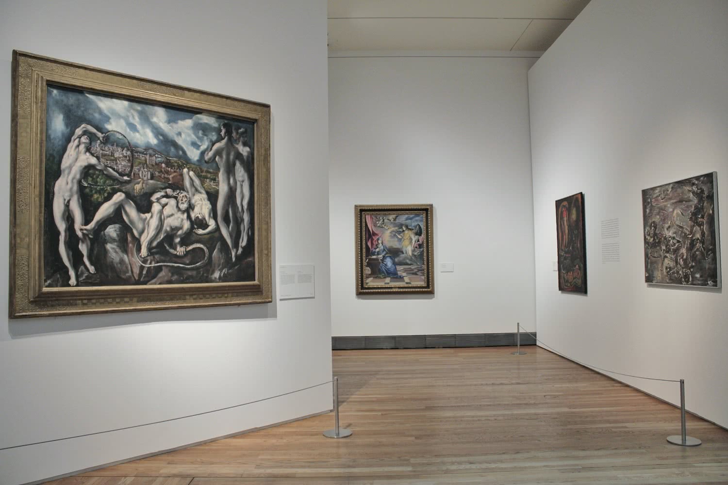 Coorganizada con Acción Cultural Española (AC/E) y patrocinada por la Fundación BBVA, la exposición El Greco y la pintura moderna está formada por 105 obras, 25 del maestro cretense y las restantes de Manet, Cézanne, Picasso, Chagall, Modigliani, Kokoschka, Pollock y Saura, entre otros destacados artistas. Los trabajos de estos pintores modernos, junto con 13 libros e impresos, ponen de manifiesto la complejidad y la riqueza que tuvo la influencia del griego de Toledo en un periodo de transformaciones radicales de la pintura.