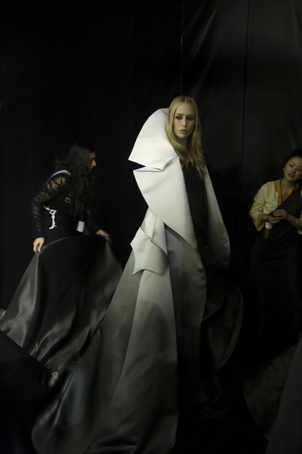 «Empecé a fotografiar el backstage de la Haute Couture en París allá por el principio del milenio, antes de internet y de la obsesión por la comunicación, cuando todavía era un lugar de paz y de concentración. Solo éramos cinco fotógrafos, siempre los mismos, bailando como mariposas alrededor de las modelos vestidas de utopía, intentando ser lo más invisibles que podíamos», relata Douet.