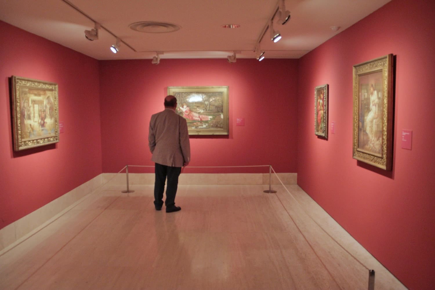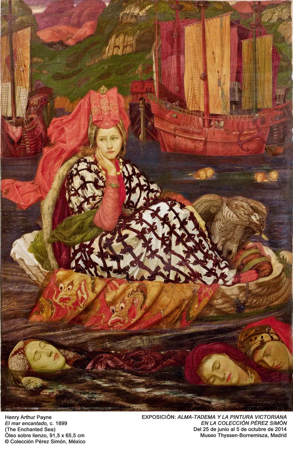 La muestra, comisariada por Véronique Gerard-Powell, profesora de la Université Sorbonne París, reúne una selección de obras –algunas de las cuales son auténticos iconos del arte británico como Las rosas de Heliogábalo, de Alma-Tadema; Muchachas griegas recogiendo guijarros en el mar de Leighton; El cuarteto de Albert Moore o Andrómeda de Poynter, entre otras– que pertenecen a la Colección Pérez-Simón, una de la más importantes de pintura victoriana del mundo.