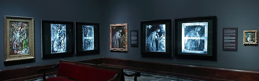 Los dos grecos de la colección del Museo se exhiben habitualmente en la Sala 8, pero en esta ocasión, la exposición muestra aspectos normalmente invisibles de estas pinturas. El interés radica en poner de relieve cómo los datos obtenidos a través de métodos científicos sobre la materialidad de las piezas son fundamentales para el estudio y mejor comprensión de las mismas. Cuestiones técnicas, como las características del dibujo subyacente o la forma en la que han sido aplicadas las pinceladas, pueden ser determinantes a la hora de catalogar una pintura.