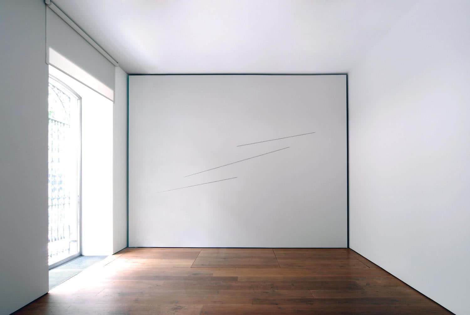 La sede de Blanca de Navarra acoge diversas esculturas en las que Sandback se sirve únicamente de un material para crear estructuras, destacar planos y volúmenes en el espacio: el hilo. Por otro lado, el espacio de Orfila presenta una colección de dibujos que abarca la creación del artista estadounidense desde finales de los años 60 hasta el año 2000.