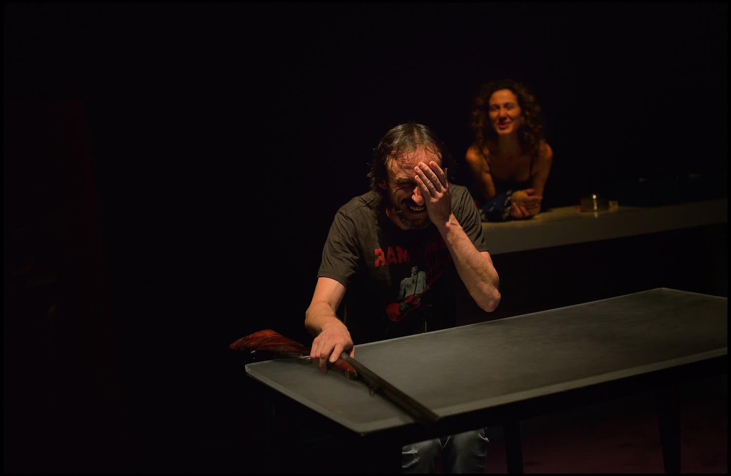 Estrenada en 2013 con una gran acogida de crítica y público, esta obra se centra en el primer desahucio del día por parte de una comisión judicial. La víctima es una mujer que debe varios meses de hipoteca. Un caso más en la rutina cotidiana de la comisión, si no fuera porque en esta ocasión son recibidos por un hombre, que tras hacerlos pasar amablemente, les apunta con una escopeta.