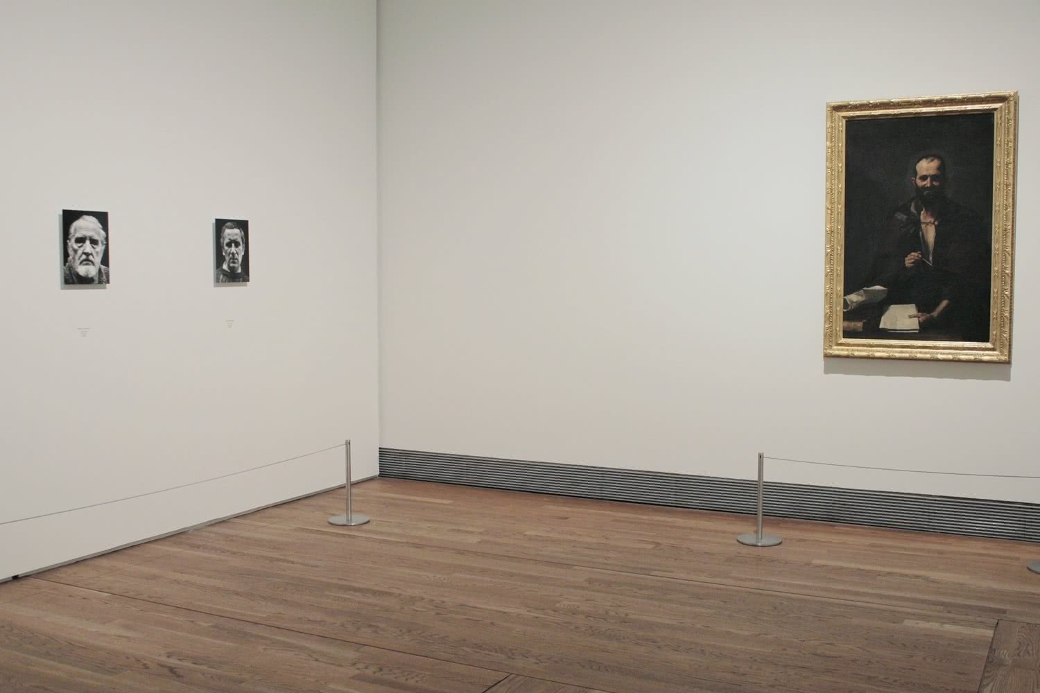 La serie Máscaras, con lo que tiene de homenaje a ese extraordinario grupo de intelectuales, se muestra ahora en el Prado en un contexto especial, enfrentada a una selección de retratos de sus colecciones pintados por artistas españoles desde el siglo XVI hasta principios del XX, y que responden al mismo criterio iconográfico –efigies de escritores y artistas españoles– y a similares modelos compositivos.