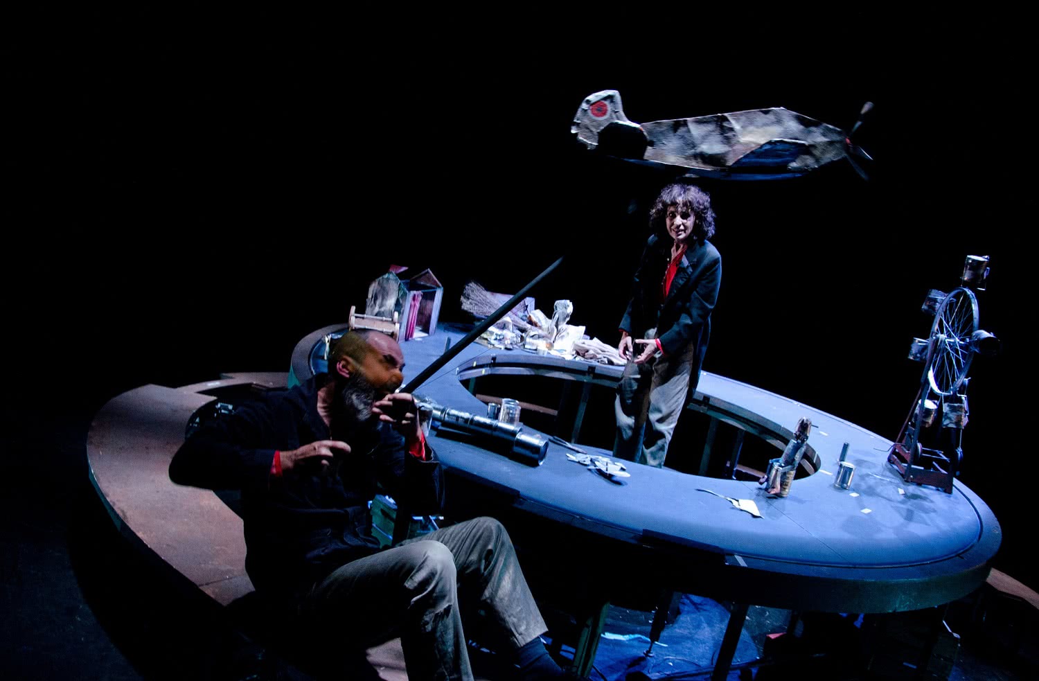 Policarpo ha sido el encargado de realizar la escenografía, «te da mucho juego, es divertida, todos los elementos que tiene son tan bonitos que a veces me da pena de que el público no los vea bien, porque son maravillosos», afirma Adriana Ozores, quien continúa «uno de las características de Petit Pierre es la imperfección, en esta escenografía se trabaja esa imperfección. Por eso Jaume creo todos los elementos con materiales de desecho y consiguió un mundo maravilloso».