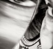Los autorretratos de Santaclara reflejan el mundo interior de la artista. Las imágenes deformadas regalan refracciones e ilusiones ópticas ambiguas y distorsionadas. De alguna manera, para hallar la forma deseada y crear su propia narrativa, la artista ha querido buscar la pérdida del contorno, hallar su propia luz. Juega con las formas del surrealismo y debe ciertos gestos así como la sensación de movimiento a su otra gran pasión, la danza.