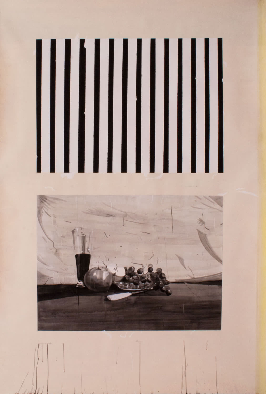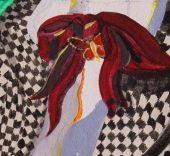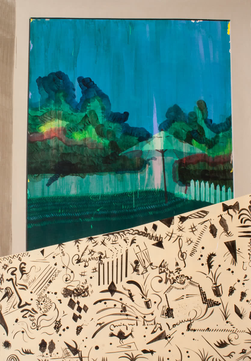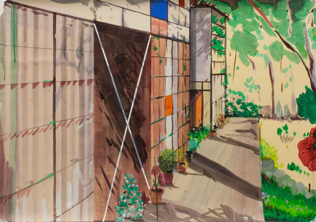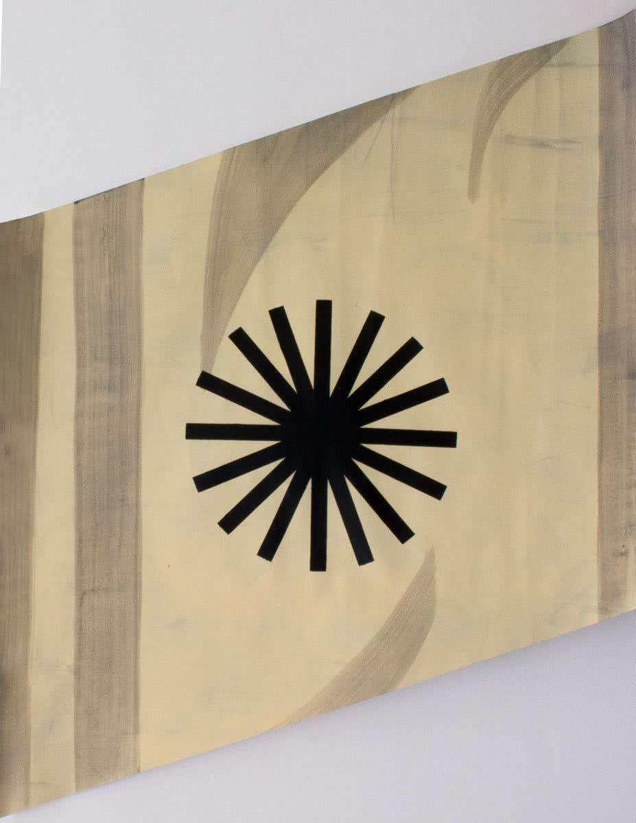 La Wiener Werkstätte fue una agrupación, constituida por artistas visuales, arquitectos y diseñadores en la Viena de 1903, con la finalidad de formar profesionales en diferentes disciplinas artísticas. Entre otras actividades experimentaron la aplicación de diseños vanguardistas sobre telas elaboradas de un modo artesanal. «Para la exposición me interesó un cartel de 1925 donde se anunciaba la venta de los diseños textiles. Mi dibujo parte del cartel original, pero aspira a convertirse en cartón para un posible diseño de un tapiz-alfombra», comenta Leal.