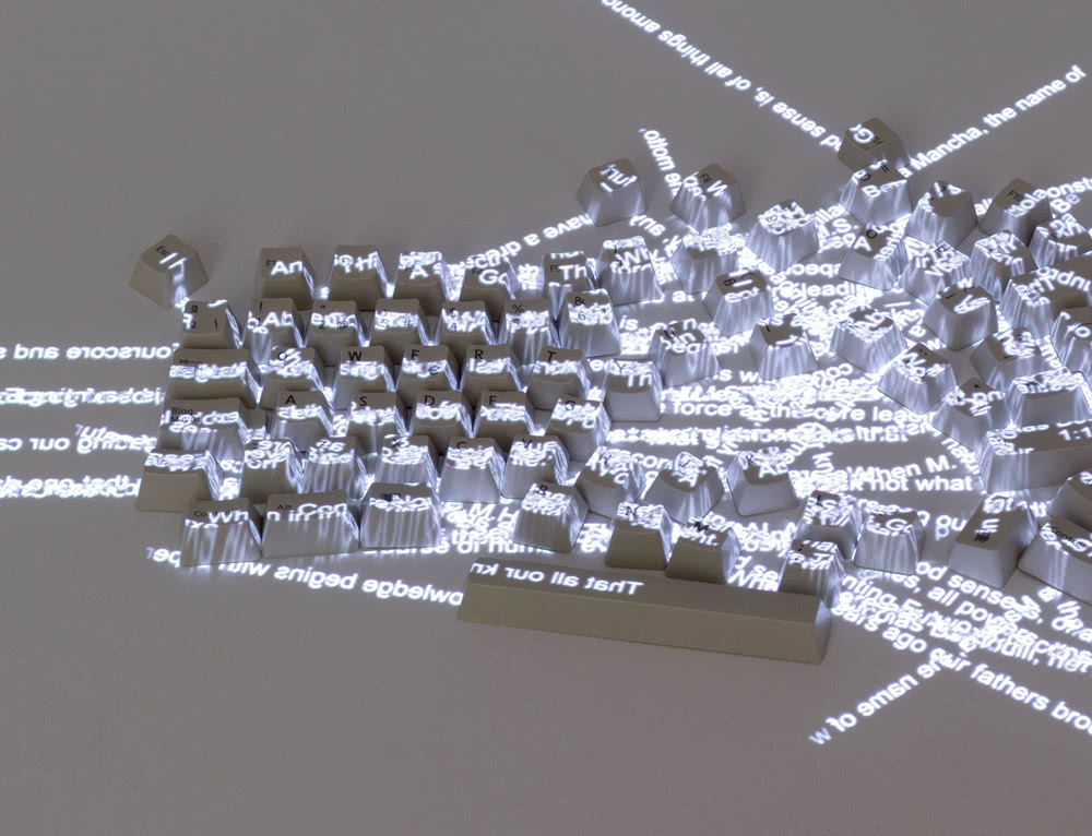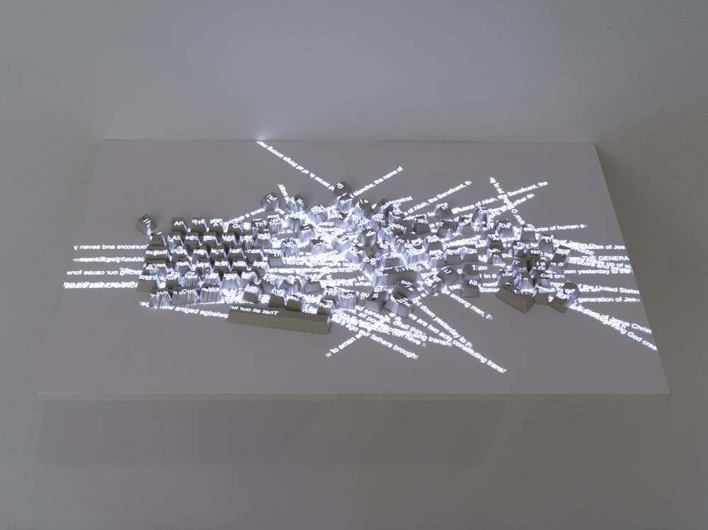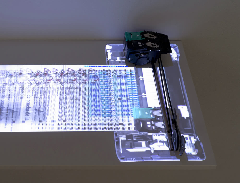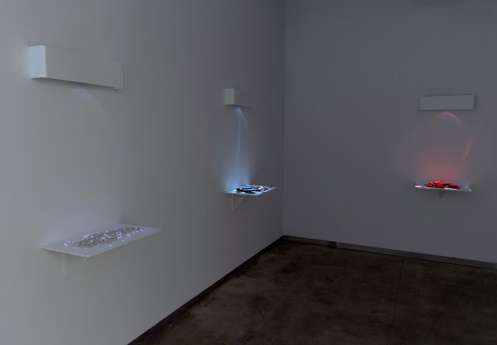 Estas proyecciones están orientadas con precisión sobre el material escultórico, dando la impresión de que las tecnologías obsoletas tienen una nueva vida. Como él mismo afirma, «estas instalaciones buscan reanimar lo inanimado».
