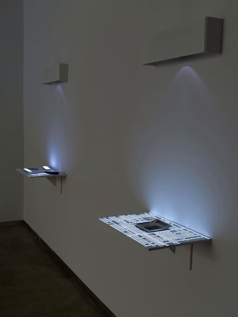 Canogar hace una verdadera labor arqueológica buscando en los cementerios de la electrónica de consumo, entre los montones de desecho en chatarrerías y centros de reciclaje, para encontrar las piezas que compongan su obra, para después organizarlas en baldas individuales, como si fueran restos frágiles de una época pasada.