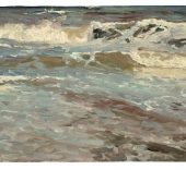 Nacido junto al mar, Sorolla debió de percibir muy pronto su fuerza como espectáculo, la fascinación visual del movimiento incesante del agua y de las nubes, del continuo sucederse de las distintas luces de horas y estaciones, el poder envolvente de sus atmósferas y la potencia emocional de sus grandes masas de color. Arrastrado por el deseo de capturar en su lienzo ese espectáculo siempre huidizo, el artista desarrolla una técnica rápida que va haciendo cada vez más visibles las marcas del pincel sobre el lienzo, la huella de su mano transcribiendo, veloz, lo que sus ojos ven. En ese ejercicio de pintar, inmerso en su trabajo como los niños en el agua, Sorolla transforma su visión apasionada en otro espectáculo distinto: el de la propia pintura.