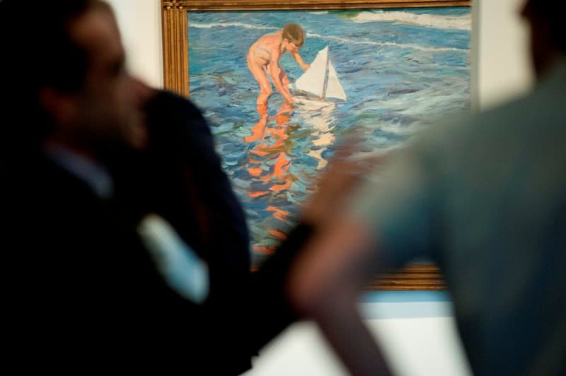 Sorolla. El color del mar incluye más de 60 obras de los fondos del Museo Sorolla. La mayor parte de ellas son lienzos, y la muestra se completa con algunas notas de color, pequeñas tablas o cartones fácilmente transportables donde tomaba sus apuntes del natural y que resultan imprescindibles para comprender sus métodos de trabajo. Estas notas, salvo por sus pequeñas proporciones, reúnen casi siempre todos los ingredientes de un cuadro completo.