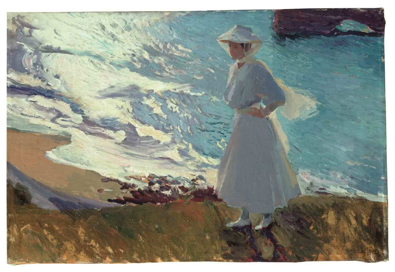 Nacido junto al mar, Sorolla debió de percibir muy pronto su fuerza como espectáculo, la fascinación visual del movimiento incesante del agua y de las nubes, del continuo sucederse de las distintas luces de horas y estaciones, el poder envolvente de sus atmósferas y la potencia emocional de sus grandes masas de color. Arrastrado por el deseo de capturar en su lienzo ese espectáculo siempre huidizo, el artista desarrolla una técnica rápida que va haciendo cada vez más visibles las marcas del pincel sobre el lienzo, la huella de su mano transcribiendo, veloz, lo que sus ojos ven. En ese ejercicio de pintar, inmerso en su trabajo como los niños en el agua, Sorolla transforma su visión apasionada en otro espectáculo distinto: el de la propia pintura.