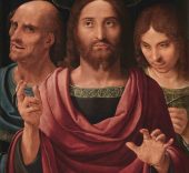 Del gótico al humanismo recorre los siglos XV y XVI y presenta obras de, entre otros, Bernardo Serra, Jaume Baço Jacomart, Juan de Flandes, el Maestro de Artés, Pedro Berruguete y Lucas Cranach, autor particularmente querido por los Abelló. Además, esta sala alberga, según el comisario, “uno de los mayores placeres visuales de la exposición”, el Salvator Mundi entre san Pedro y san Juan, de Fernando Yáñez de la Almedina, considerada una obra maestra.