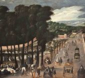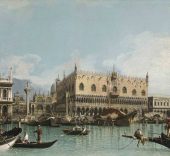 Las vedute, Goya y su mundo se adentra en el siglo XVIII. Esta sala alberga, entre otras, piezas magistrales de Canaletto y Guardi, y lienzos de Antonio Joli, que muestran cómo se traslada a Madrid y su entorno el estilo italiano de mediados del setecientos. En palabras del comisario: “un conjunto insólito en el coleccionismo español”. Incluye, además, dos retratos particularmente importantes de Goya, de don Martín Miguel de Goicoechea y doña Juana Galarza, sus consuegros, y un dibujo de la esposa del pintor, doña Josefa Bayeu que, como explica el comisario citando a Carducho, refleja como “el Dibujo es la perfección del Arte”.