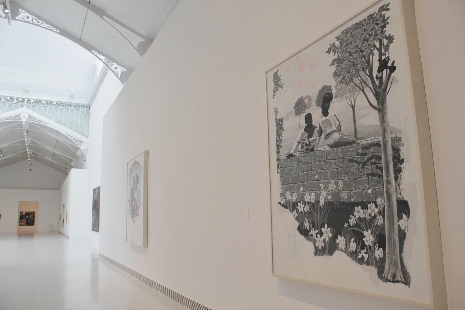 Comisariada por Nav Haq, la muestra del Palacio de Velázquez sigue un discurso expositivo cronológico. Formada por pinturas, en su mayoría, también cuenta con un vídeo y una instalación fotográfica formada por varios negativos. En la sede madrileña el visitante puede ver siete creaciones que no se han mostrado ni en Copenhague ni en Bruselas, y algunos de sus trabajos más recientes.
