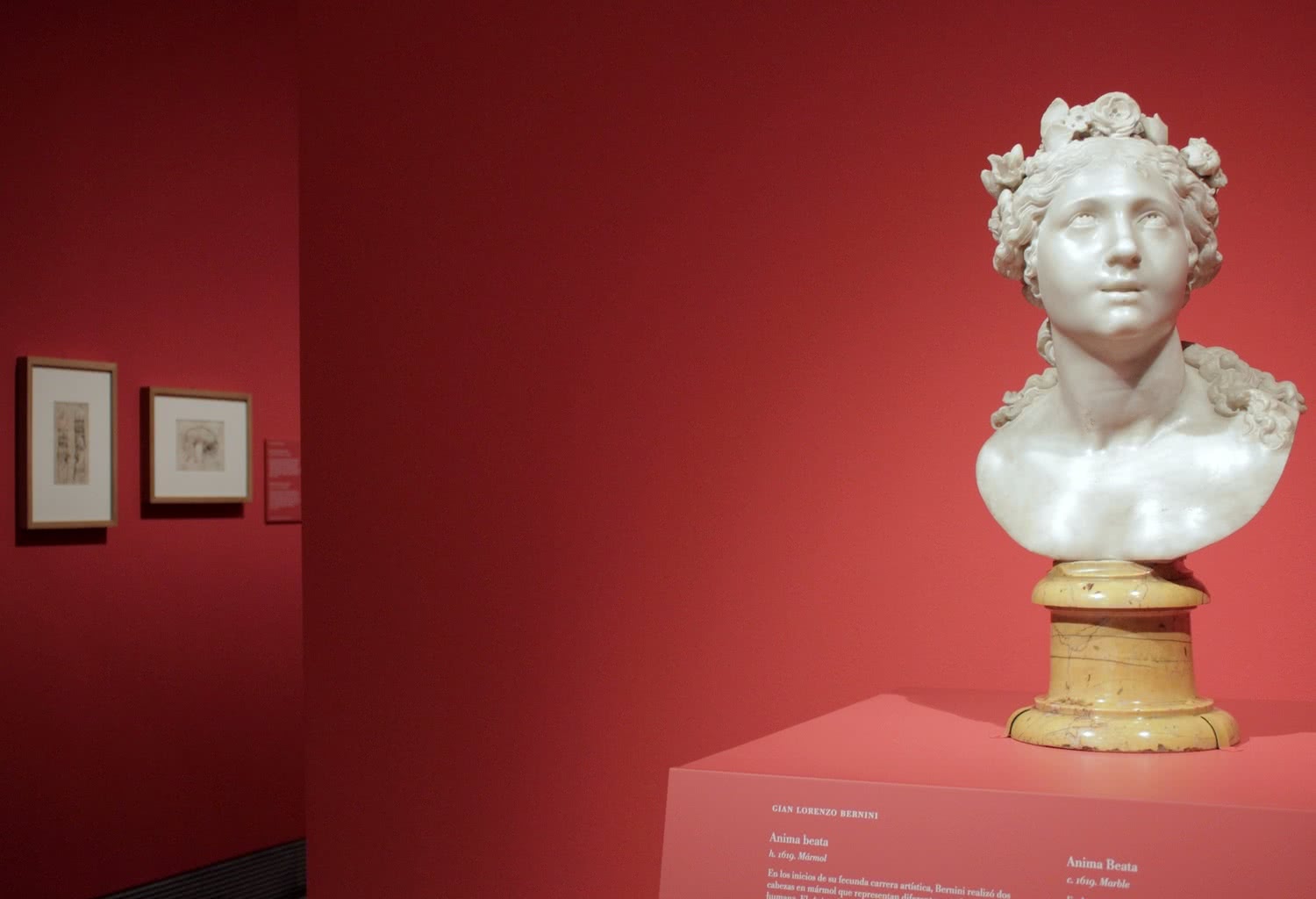 A través de 39 obras, esta muestra pone un especial énfasis en su relación con personalidades españolas y, especialmente, con la Monarquía Hispánica y sus representantes. Las complejas relaciones diplomáticas y políticas de Roma con España se vieron reflejadas en los encargos a Bernini tanto de mecenas españoles en Roma (con figuras tan fundamentales como el duque del Infantado, el cardenal Pascual de Aragón o el marqués del Carpio) como de la propia Corona. Tanto Felipe IV como Carlos II financiaron obras en algunas de las basílicas más simbólicas, desde San Pietro a Santa Maria Maggiore, pero también le hicieron encargos para El Escorial o el Real Alcázar de Madrid.