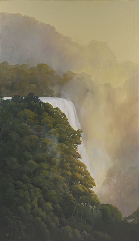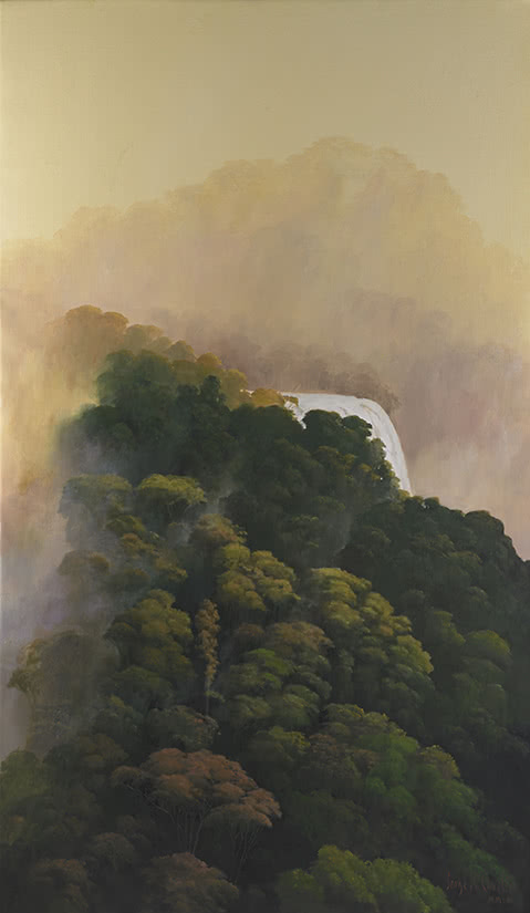 La expresión artística de Jorge Cavelier gira alrededor del tema de las lagunas sagradas. En cuanto las obras toman forma en el ritual creativo, el artista, la persona detrás de los materiales no existe. Las imágenes se transforman en el vehículo para llevar al espectador a los momentos de compenetración con los paisajes interiores para inducir a la paz a través de la contemplación del bosque de niebla, de las aguas puras, regeneradoras.