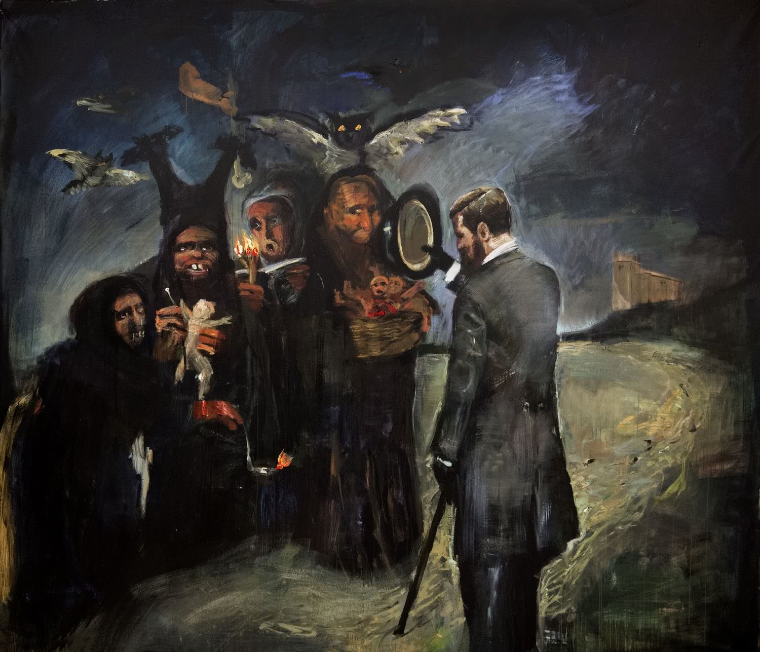 La exposición no sólo está en el exterior sino que también transcurre en el interior, donde las nuevas obras interactúan con las del museo. El visitante debe ver la muestra como «un juego o gincana», asegura Doctor, en el que tiene que ir buscando las piezas del artista salmantino entre las de la exposición permanente. Así, el segundo eje reúne ocho cuadros del artista disimulados, como es el caso de El Aquelarre de Lázaro Galdiano, que sustituye a la famosa pintura de Goya durante el tiempo que permanecerá en préstamo.
