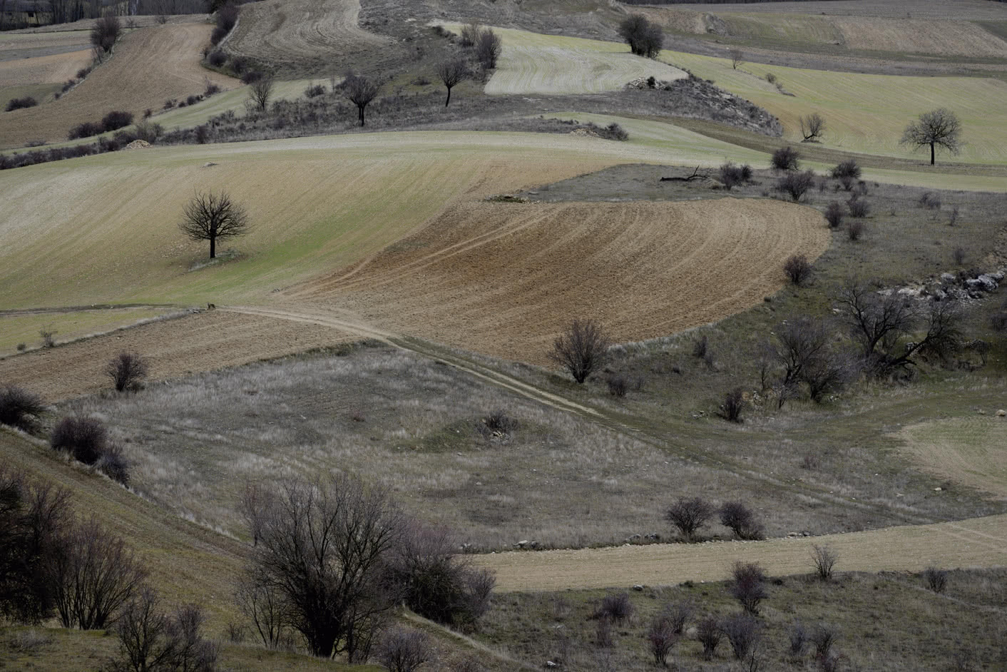 «Hace varios años descubrí en la mitad del camino un bonito árbol solitario en medio de un campo plano y extenso. A veces había trigo verde en el campo, a veces era trigo amarillo, y algunos otros era sólo la tierra arada o hierba verde. Pero el árbol siempre estaba allí, solo y elegante hasta el punto de arrogancia», recuerda Erhardt. Hasta que un día se animó a parar y fotografiar al árbol en su soledad. En los viajes posteriores fue más lejos, se alejó de la carretera y se encontró con el silencio, «ni siquiera el viento se atrevió a hacer ruido», en medio de unas tierras en medio de la nada, sin que nadie las molestara.