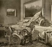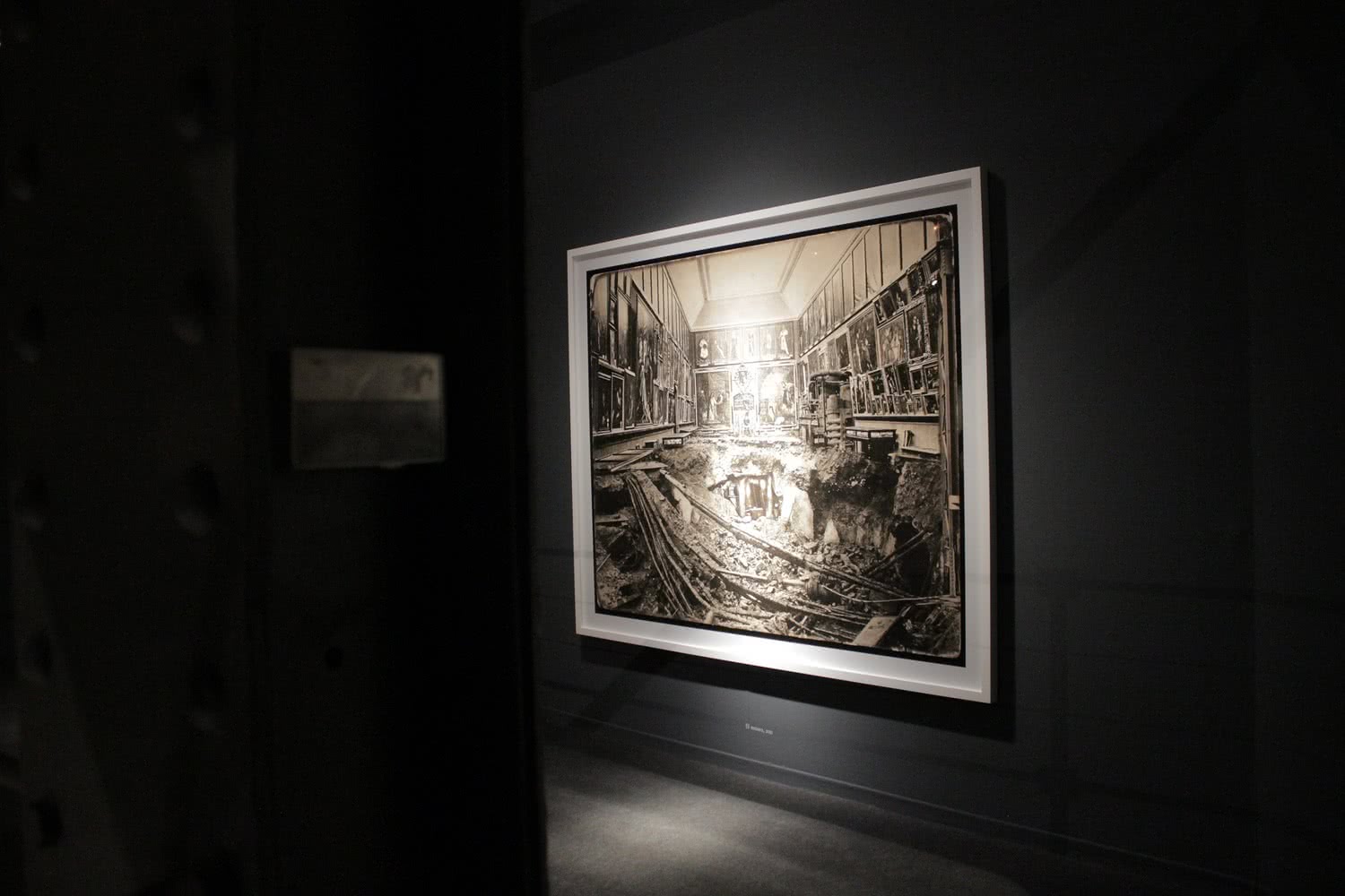 El recorrido expositivo crea una especie de relato a partir de la violencia desatada de las imágenes iniciales en las que irrumpen fenómenos naturales, como el mar embravecido, ríos desbordados, aguas que ascienden vertiginosas, fuego o humo de volcán. Conforme se asciende a las distintas plantas de la sala, una lenta devastación se apodera de estos escenarios, para quedar, por último, las consecuencias de la destrucción: barro, piedras, muros desconchados, ruinas… como si un bombardeo o un tsunami hubiesen barrido definitivamente estos edificios.