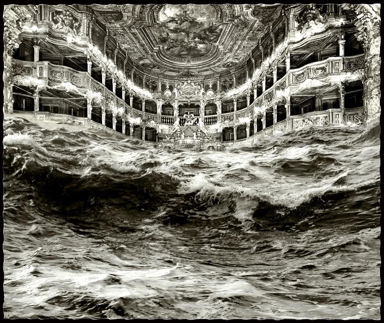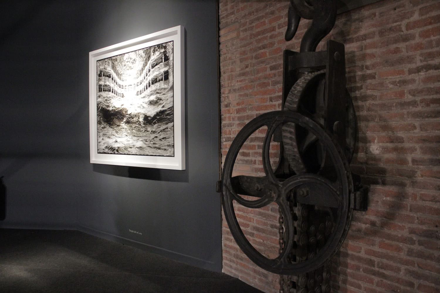 El fotógrafo ha seleccionado fotografías de imponentes arquitecturas de edificios singulares (teatros, bibliotecas, iglesias o museos) erigidos en su mayoría en los siglos XVII y XVIII, que ha encontrado en mercados de segunda mano y anticuarios de toda Europa. El segundo paso de su proceso creativo es combinarlas con imágenes mediante técnicas digitales y darles una nueva vida, un nuevo sentido para crear una historia diferente.