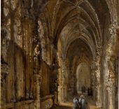 Para conocer la calidad y el destacado interés de la dedicación del artista al paisajismo romántico, junto al díptico se exponen dos vistas monumentales de Roberts y varias pinturas, acuarelas y dibujos de Pérez Villaamil. La selección, realizada entre las obras conservadas en el Prado, incluye asimismo los volúmenes con litografías de La España Artística y Monumental, gran proyecto editorial del que fue director.