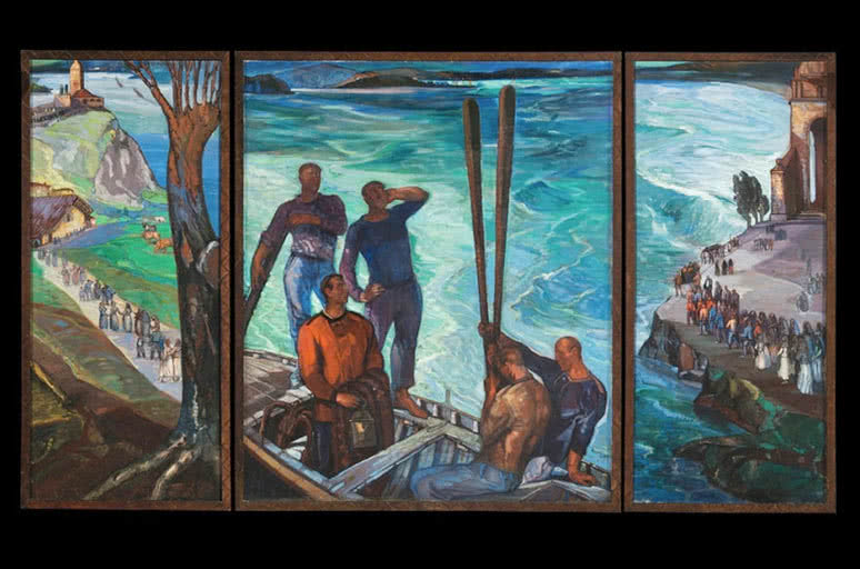 Ya desde el título –Tierra vasca, Lírica y Religión–, el autor reafirma el alto contenido simbólico del tríptico, que rememora un episodio histórico de especial dramatismo: la galerna conocida como la “Galerna del Sábado de Gloria”, que el 20 de abril de 1878 costó la vida a más de doscientos pescadores de la localidad vizcaína de Bermeo.
