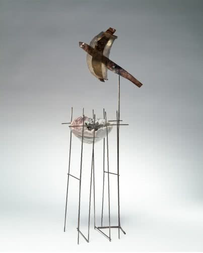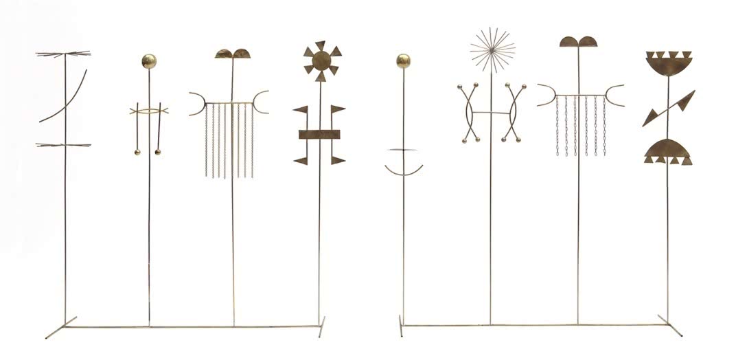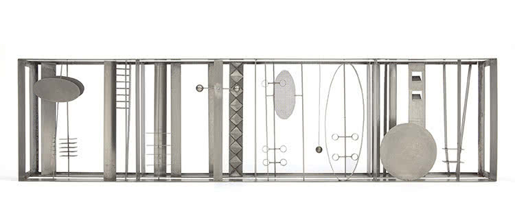 Esa variedad se constata en la selección de piezas que se exponen en la Galería Elvira González, entre las que se encuentra La danza della sposa (1979), con ligeras figuras elaboradas en latón, o la escultura de hierro Arte del contrappunto plastico n. 1 (1969), así como una serie de bajorrelieves realizados en arcilla o en técnica mixta sobre yeso.
