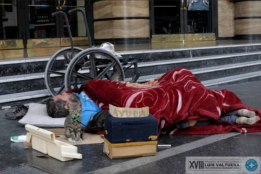 Además de la fotografía ganadora se mostrarán las tres series finalistas: Crisis nacional de vivienda. Desahucios, de Andrés Kudacki; Turismo sucio, de David Rengel, que muestra a un grupo de turistas japoneses durante una visita guiada a un vertedero de Camboya donde trabajan decenas de niños; y Hotel de las estrellas, del fotógrafo Czuko Williams, que recoge 10 imágenes de personas sin hogar que duermen en la calle, contextualizadas en comercios o rincones diferentes de Madrid.