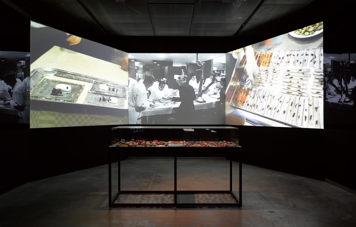 La muestra incluye desde grandes murales a centenares de dibujos realizados por el mismo Adrià, pasando por objetos y herramientas de elBulli, hasta una recreación del comedor y de la misma cocina donde se elaboraron los 1.846 platos de la historia de este restaurante único. A todo ello se suman proyecciones audiovisuales inmersivas y animaciones que ayudan a diseccionar e interpretar este universo y que adentran al visitante en la mente del equipo de Adrià y un formato expositivo con instalaciones artísticas que son un guiño a las estructuras reticulares de su amigo Richard Hamilton, que no faltó ni un año a la cita gastronómica en Cala Montjoi.