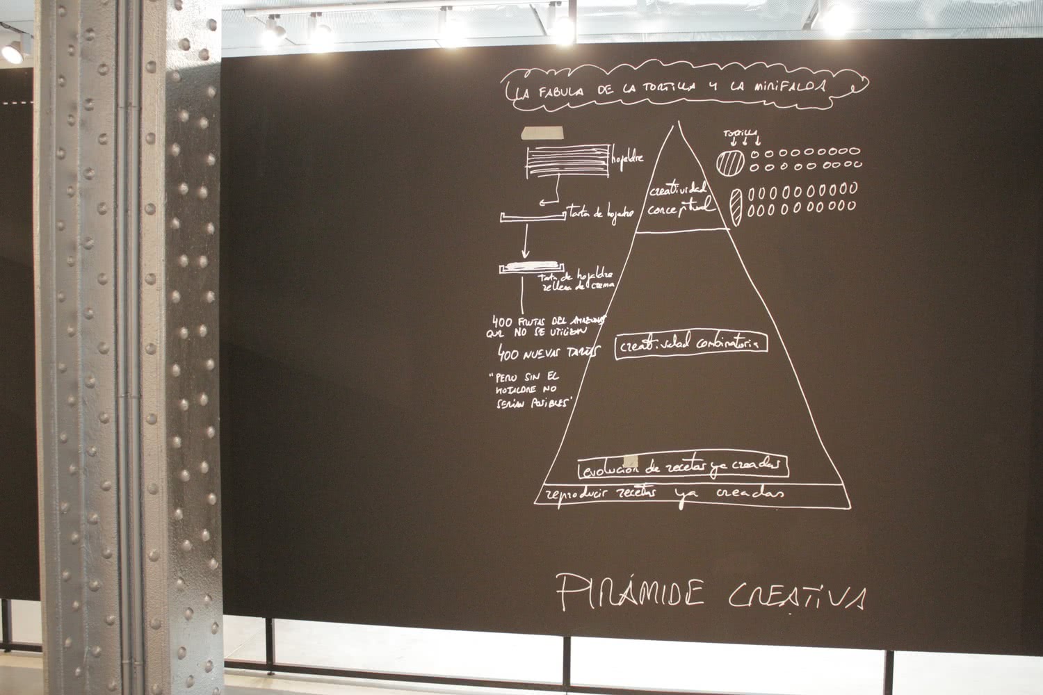 Ferran Adrià. Auditando el proceso creativo, que puede verse de manera gratuita en el Espacio Fundación Telefónica hasta el 8 de marzo de 2015, es una inmersión en el universo creativo de Adrià (Hospitalet de Llobregat, 1962) y su equipo. Pero no se trata de una exposición de cocina, es un recorrido por el proceso creativo exitoso de elBulli. Un éxito que radica en la renovación constante, basada en parámetros de innovación y creatividad, características que le han convertido en un referente no sólo en el ámbito gastronómico.
