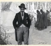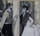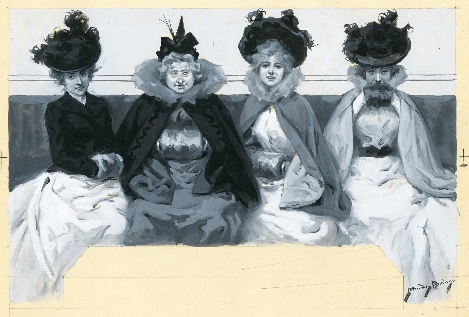 Especialmente importante para él era la figura de la mujer. A través de sus ilustraciones se descubre el aspecto de las mujeres de la época, la moda, los vestidos y sus complementos. También fueron abundantes sus piezas para acompañar obras de autores como Vicente Blasco Ibáñez, Jacinto Benavente, Emilia Pardo Bazán o Benito Pérez Galdós, entre otros.