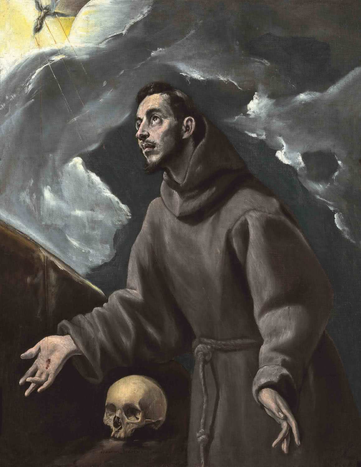 La muestra comienza con un homenaje a El Greco, en el cuarto centenario de su fallecimiento, con la obra Estigmatización de San Francisco.