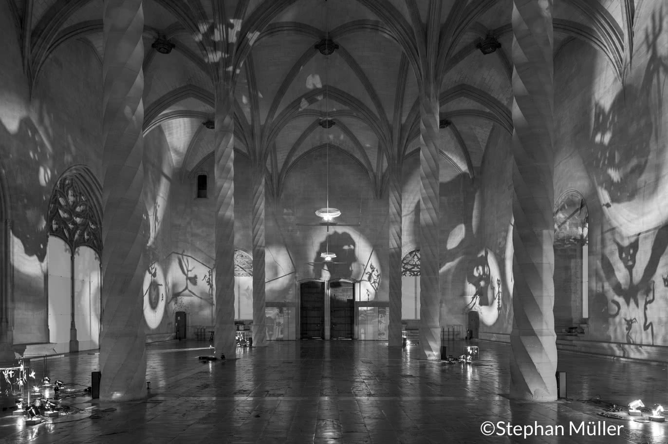 Comisariada por João Fernándes, director adjunto del Museo Nacional Centro de Arte Reina Sofia en Madrid, Sombras brinda al visitante la posibilidad de tener una experiencia acústica, gracias a la especificidad del espacio gótico.