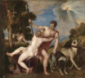 En el trabajo de Tiziano se denomina «poesías» al conjunto de obras mitológicas que pintó para Felipe II entre 1553 y 1562. Estas son: Dánae, Perseo y Andrómeda, Venus y Adonis, Diana y Adonis, Diana y Calisto y El rapto de Europa. Probablemente fue el propio Felipe II quien encargó a Tiziano un conjunto de pinturas mitológicas, dándole libertad para elegir los temas y su plasmación pictórica.