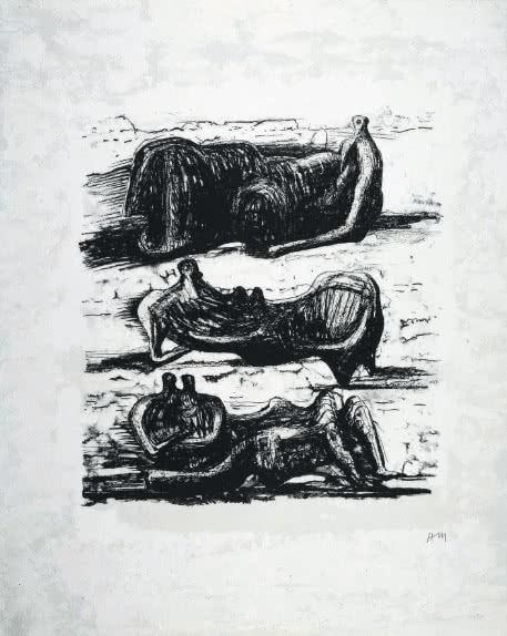 La selección de obras de esta exposición, procedentes de colecciones particulares, compagina, en el caso de Moore, la escultura y el grabado, y muestra dos de sus temas recurrentes: la figura reclinada y la madre y el niño, un motivo que, según reconoció el propio artista, llegó a convertirse en una obsesión, representada aquí por Mother and Child [Madre e hijo], de 1953. La acompaña una serie de inquietantes aguafuertes surgidos del regalo recibido en 1966 de su amigo el biólogo Sir Julian Huxley: el gigantesco cráneo de un elefante africano, que se convertirá en un contenedor en el que Moore encuentra todas las formas posibles.