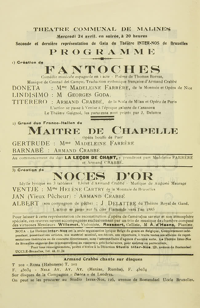 Conrado del Campo compuso, así pues, una ópera de cámara de ambiente dieciochesco y veneciano donde el diálogo entre títeres y cantantes crea un sutil juego de perspectivas, realidades y engaños. Para desarrollar este proyecto de teatro musical, el habitual salón de actos de la Fundación Juan March se transforma en un pequeño teatro.