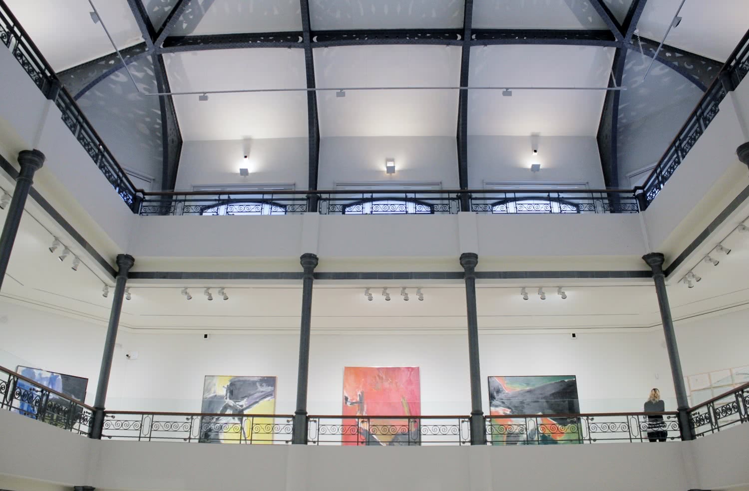 Tras su paso por Granada, la muestra exhibe en la Casa de las Alhajas de la Fundación Montemadrid más de un centenar de obras, entre lienzos, grabados y dibujos y algunos “frescos portátiles”, en los que Guerrero experimentó con materiales diversos, como parte de un proceso de investigación sobre la relación entre pintura y arquitectura. Junto a estos cuadros también se muestra un importante conjunto documental que incluye catálogos, fotografías, documentos y escritos del creador.