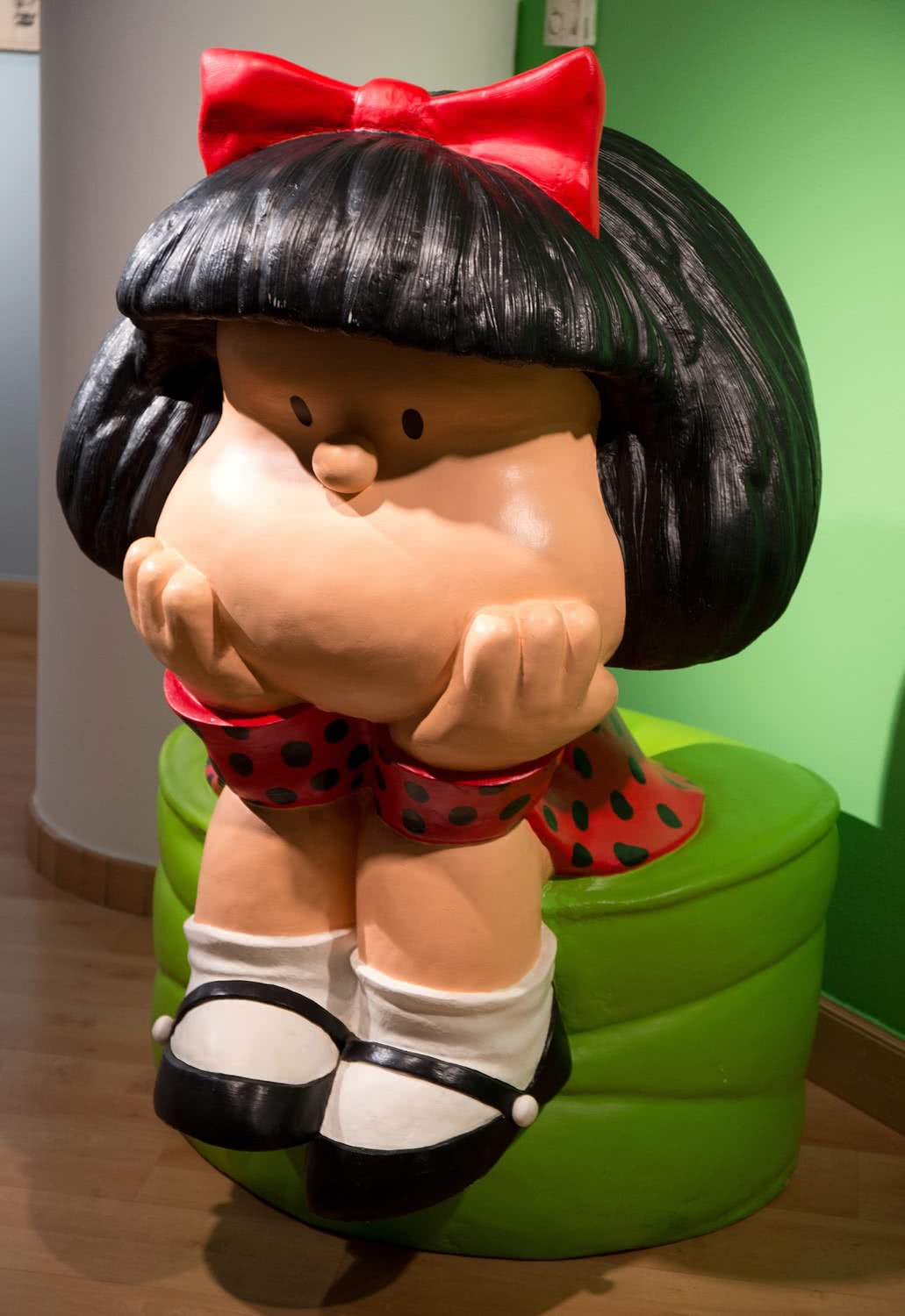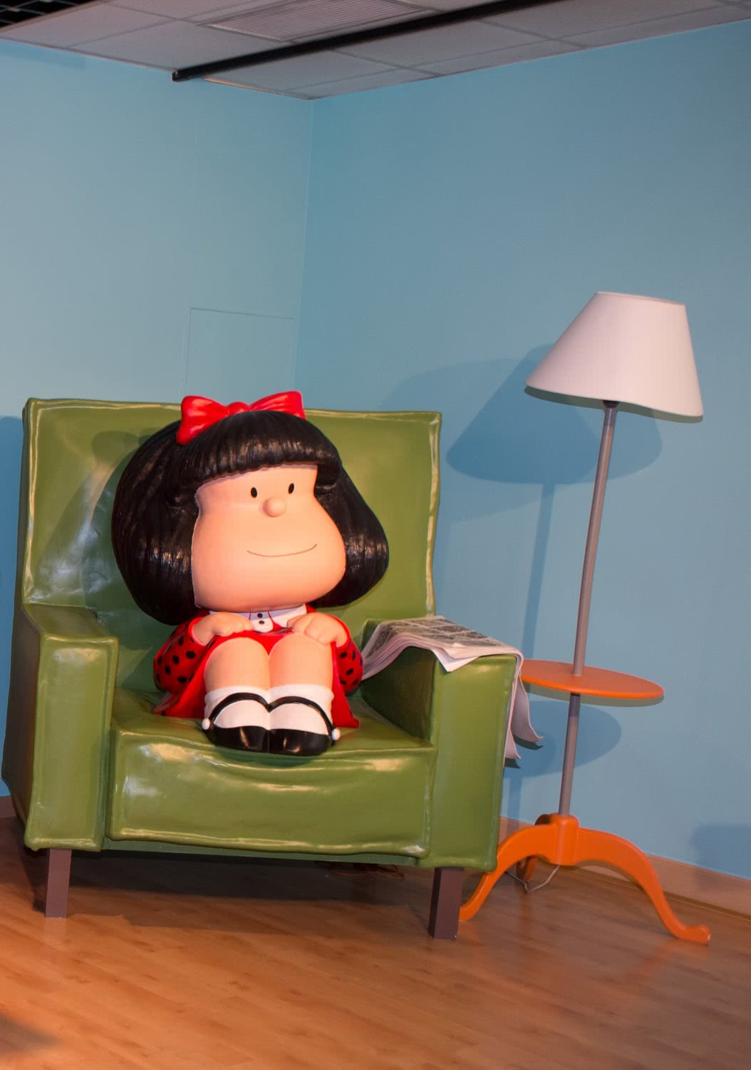 Concebida para todos los públicos, Mafalda, una niña de 50 años tiene como escenario las diferentes habitaciones del piso donde vivía con sus padres. El salón, la cocina o el cuarto de la heroína son los lugares de los múltiples debates alrededor de la ecología, la bomba atómica, el capitalismo, de la condición femenina, de los Beatles o de la política, que se producen en esta historieta traducida a más de 20 idiomas y vendida en el mundo entero.