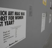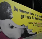 Probablemente el cartel de 1989 Do women have to be naked to get into the Met. Museum? Less than 5% of the artists in contemporary art sections are women, but 85% of the nudes are female (¿Tienen que estar desnudas las mujeres para entrar en el Museo Metropolitano de Nueva York? Menos del 5% de los artistas expuestos en la secciones de arte moderno son mujeres, pero el 85% de los desnudos son femeninos) sea el más conocido.