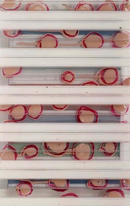 La muestra, que referencia su taller de trabajo, es un ejemplo del desarrollo de su proceso artístico y plantea un diálogo entre sus pinturas y los policarbonatos celulares con los que está trabajando en los últimos años.