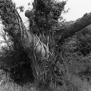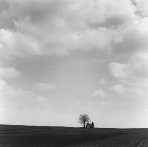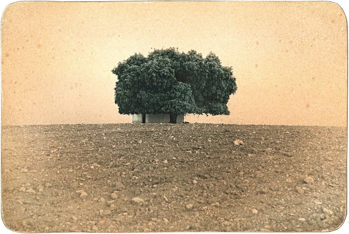 Finalmente, Quintanilla presenta una serie de fotografías que exploran el diálogo entre casas y árboles, elementos constructivos y vegetales, lo humano frente a lo natural, y su integración con el paisaje que los rodea. Oasis de soledad, metáforas del abandono rural, fruto de una sociedad desorientada que ensalza como valores únicos el progreso y el éxito económico, tan acelerada que no recuerda sus orígenes y que ha perdido sus propias raíces.