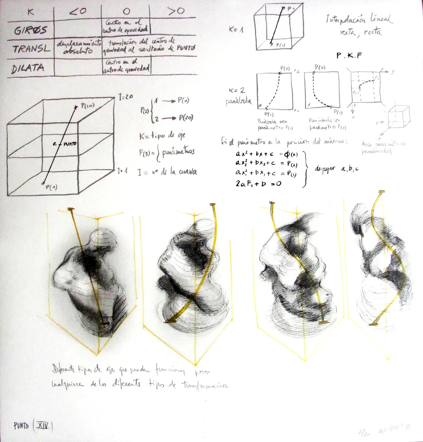 El movimiento y el cuerpo son el origen de las propuestas presentadas por José Luis Alexanco (Madrid, 1942), uno de los artistas que investigan por primera vez en España con la computación aplicada al arte en el Centro de Cálculo de la Universidad Complutense de Madrid, y Alex Francés (Valencia, 1962). En ellas, la escultura y su movimiento son el soporte mientras que la interacción con el espectador es el medio. Por su parte, EspadaySantacruz Studio (Madrid, 2008) y Kaoru Katayama (Japón, 1966) se centran en la descomposición del espacio y la creación de formas, tomando la línea como división, lo que posibilita el volumen.