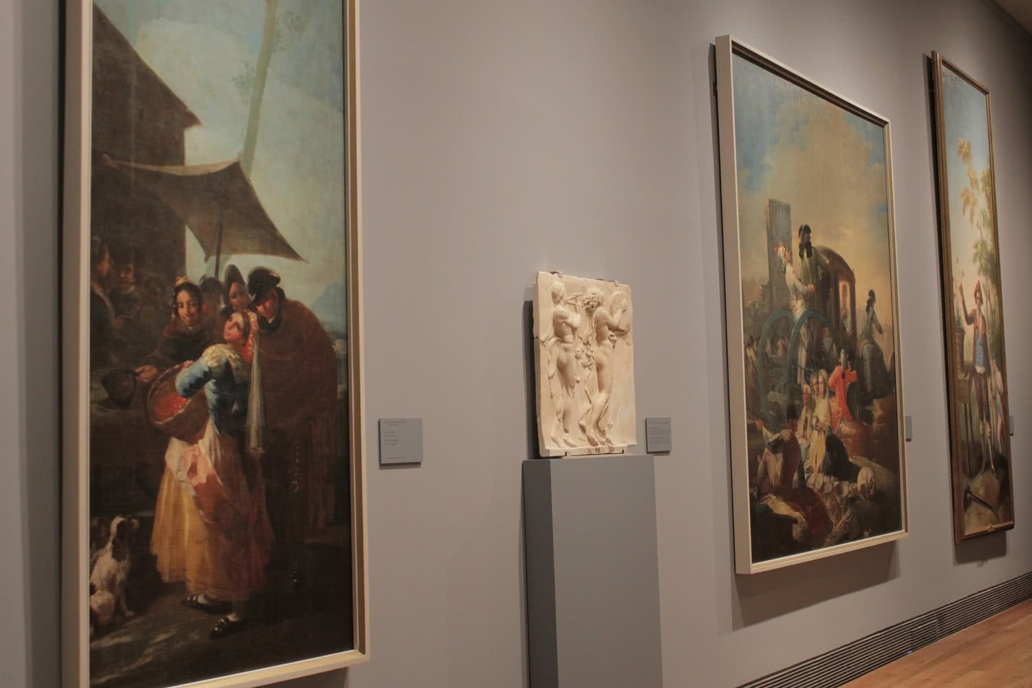 La muestra presenta los cartones de Goya, así como las obras del resto de los artistas representados, de un modo radicalmente distinto al habitual en la colección permanente, en la que se muestran siguiendo el orden cronológico de las series y los ámbitos para los que fueron destinadas. Una extraordinaria ordenación, estructurada ahora a través de ocho secciones temáticas que revela al público algunos aspectos técnicos de estas obras y pone de manifiesto varias de las líneas de investigación que se seguirán desarrollando en los próximos años, valorando así los cartones para tapices de Goya como uno de los conjuntos más importantes y decisivos para el entendimiento de sus ideas y la evolución de su arte.