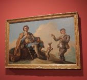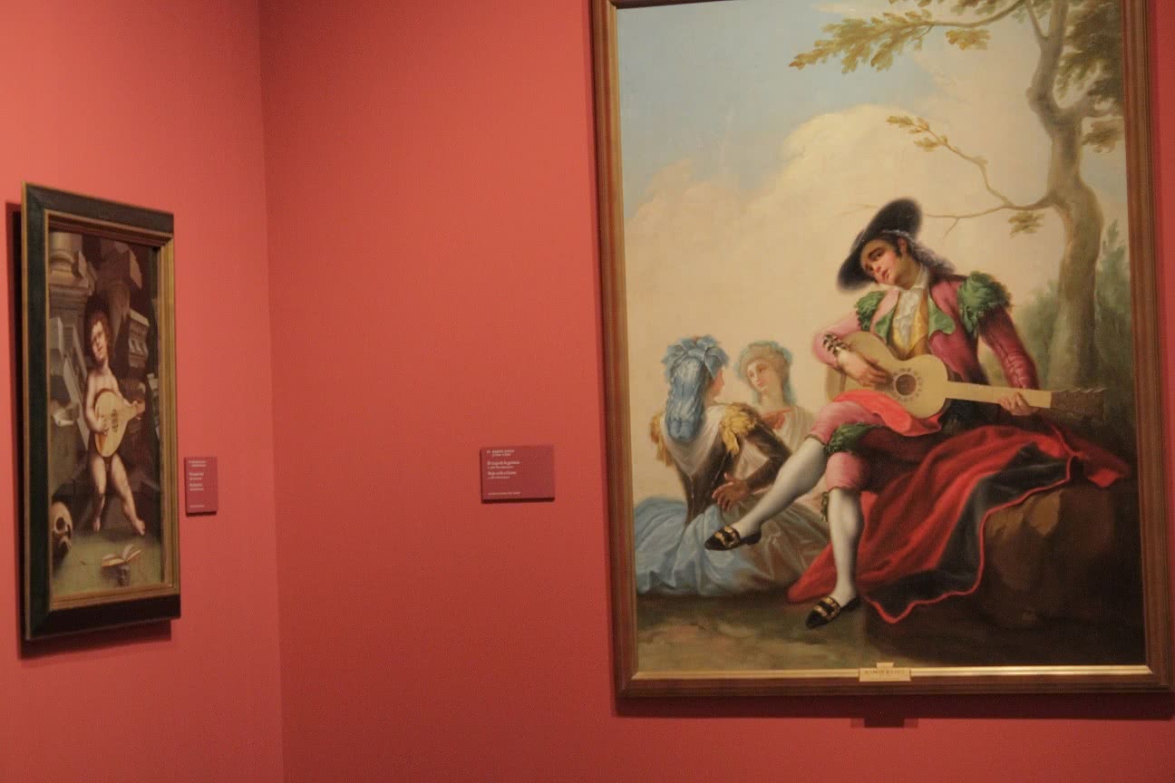 Goya en Madrid, que comienza con los asuntos de caza, muestra tanto el mundo de su tiempo como los intereses del artista a través de las clases sociales, el mundo infantil, el baile y la música, o la crítica de asuntos contemporáneos, como el matrimonio desigual. Temas, composiciones y actitudes que se comparan con obras de predecesores suyos como Tiziano, Velázquez o Rubens, pero también con pinturas, esculturas y dibujos de otros artistas que trabajaron para las decoraciones reales en la segunda mitad del siglo XVIII como Francisco y Ramón Bayeu, José del Castillo y Mariano Salvador Maella.