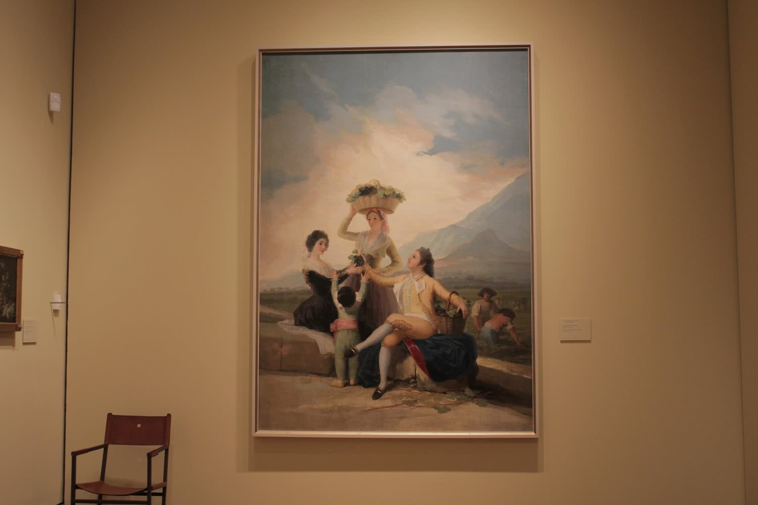 Dicha comparación revela el modo distinto en el que Goya recrea la sociedad y la vida de su tiempo según su propia visión de la realidad y de modelos que han quedado cristalizados en el imaginario colectivo de lo español y, sobre todo, de lo madrileño: los majos y majas, a los que en composiciones como La merienda, La riña en la venta nueva, El cacharrero, La vendimia o La nevada, Goya dota de un carácter universal.